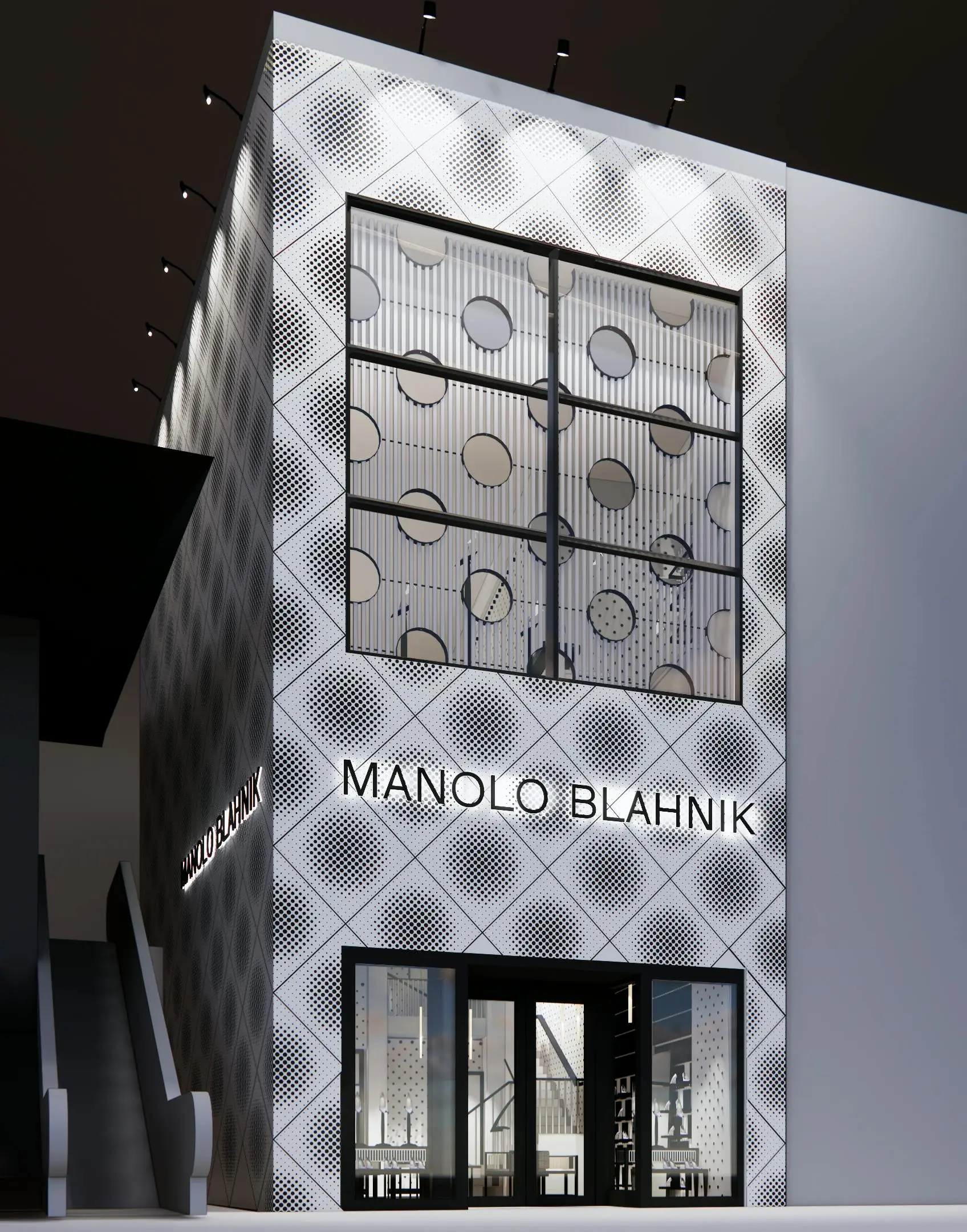 • Integrated lighting design highlighting vertical circulation and retail displays